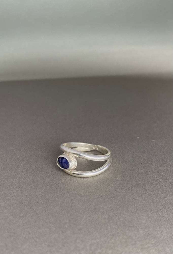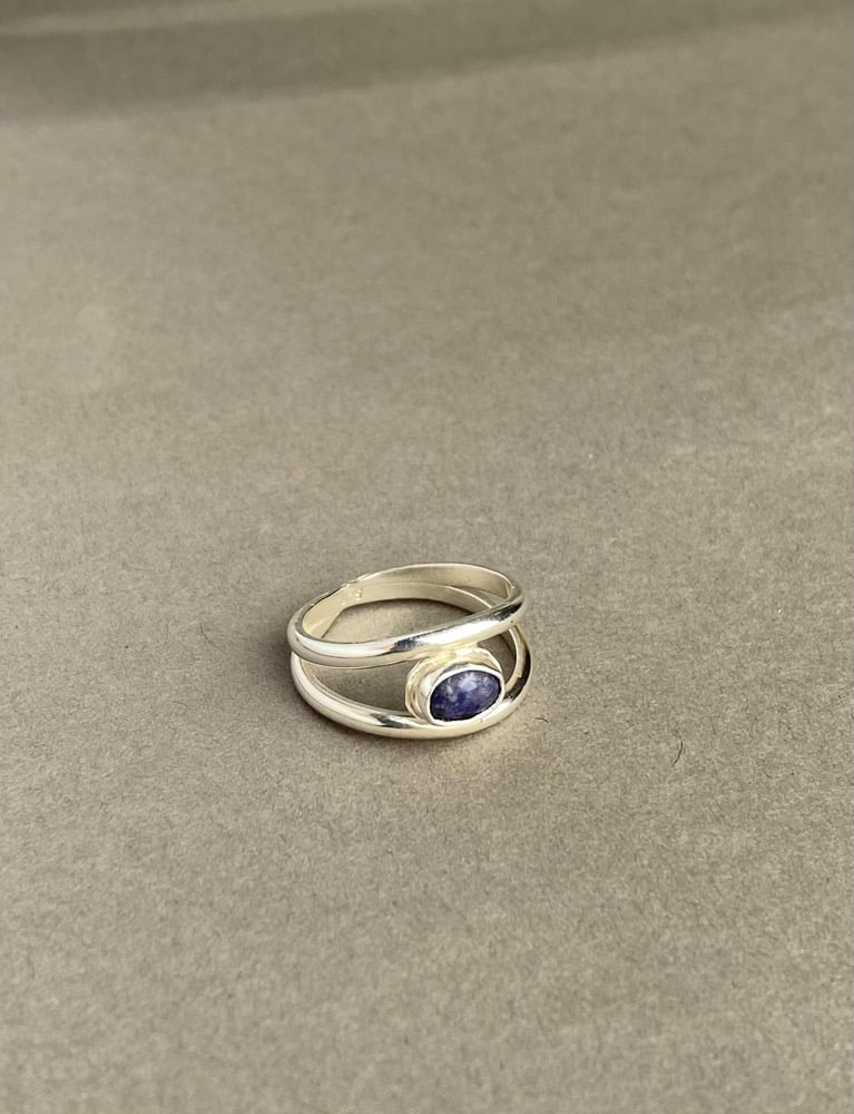 925 sterling silver double shank with d shape wire with an oval lapis lazuli cabochon.