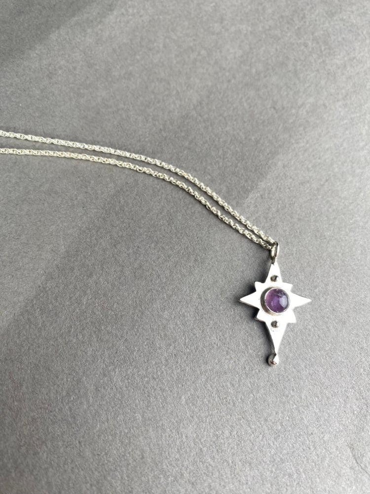 925 sterling silver handmade star pendant with a amethyst cabochon stone set.