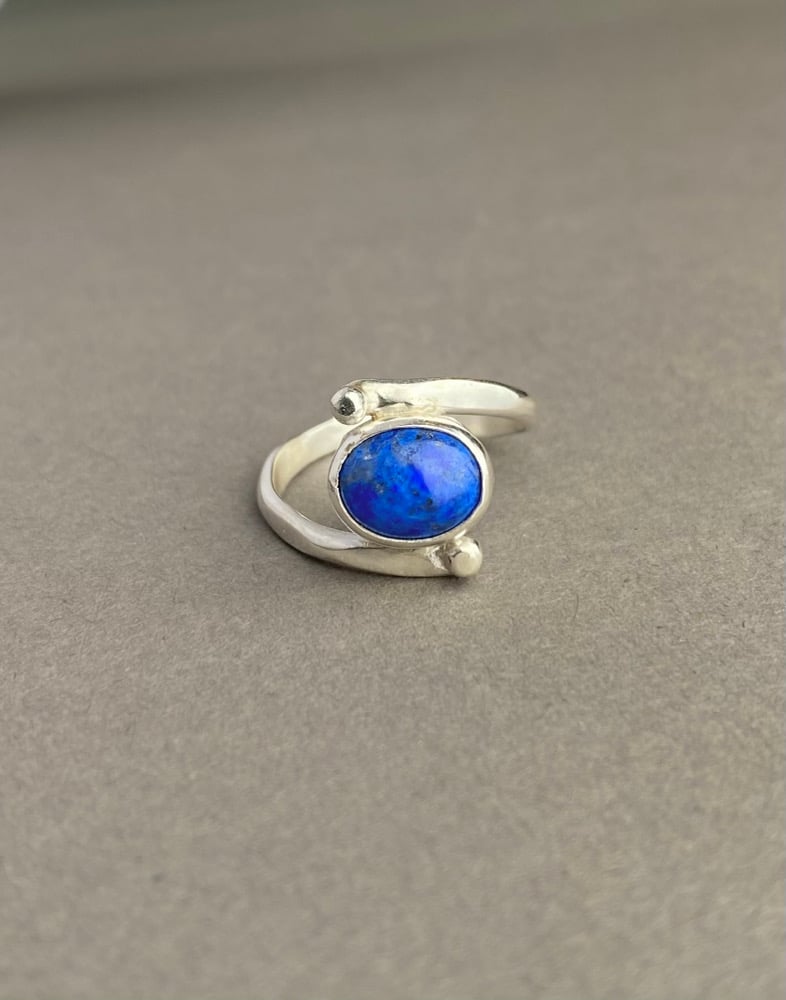 925 sterling silver free form synchronised hammered band with a Lazurite cabochon stone set.