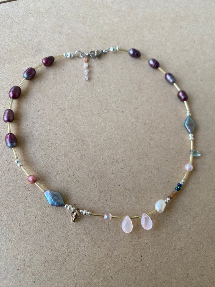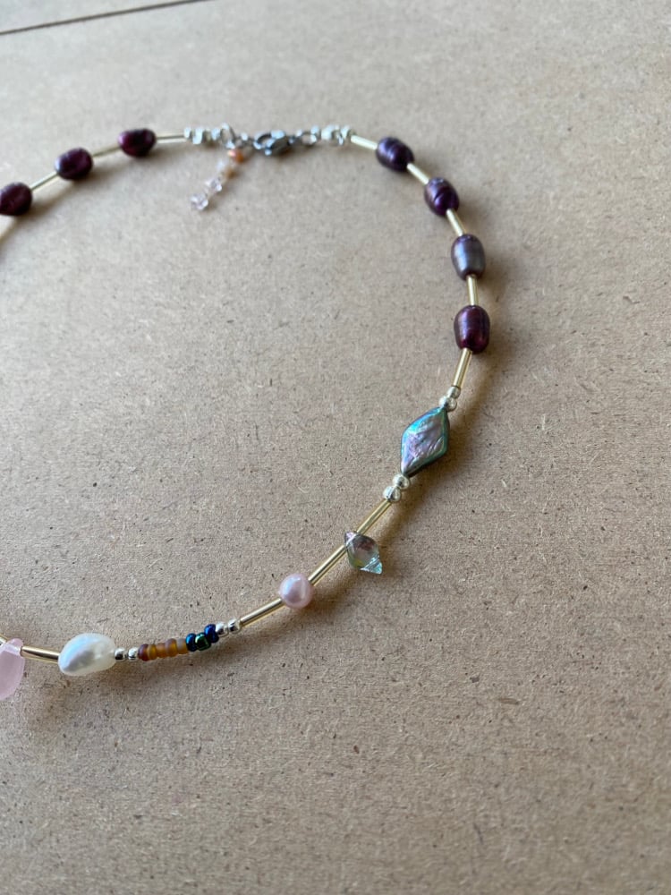 one of a kind BEADIE design - random assortment of repurposed antique and second hand beads with stainless steel components. Anti tarnish and hypoallergenic.