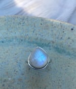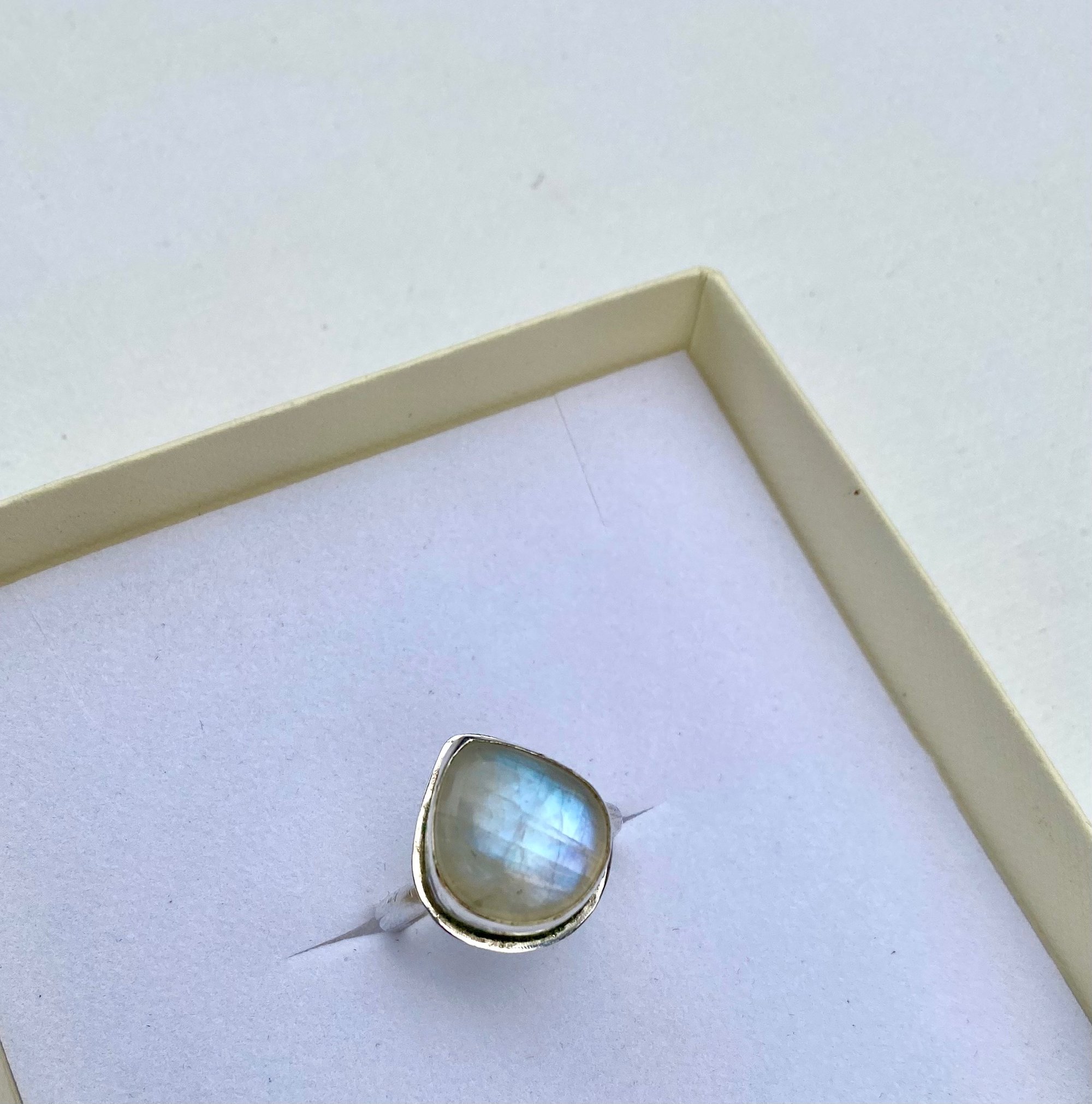 Handmade chunky 925 sterling silver Rainbow Moonstone bezel set ring.