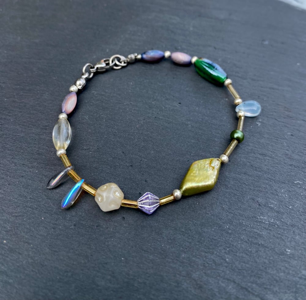One of a kind BEADIE design - random assortment of repurposed antique and second hand beads with stainless steel components. Anti tarnish and hypoallergenic. No two beadie designs are the same !