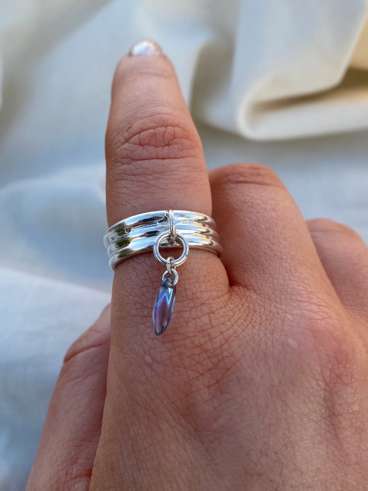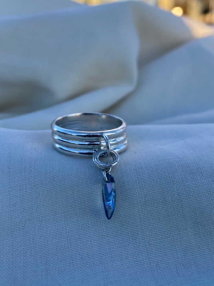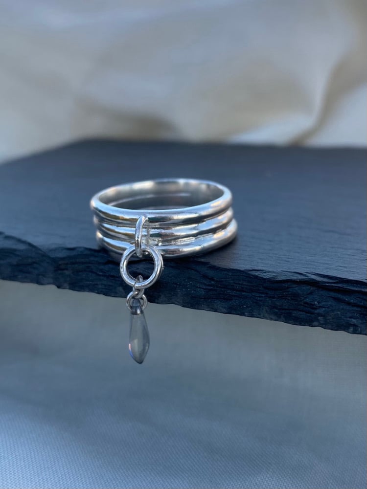 ‘Charmed III’ - Handmade using precious 925 silver with a triple D-shape band with soldering jump ring and one glass bead hanging charm.