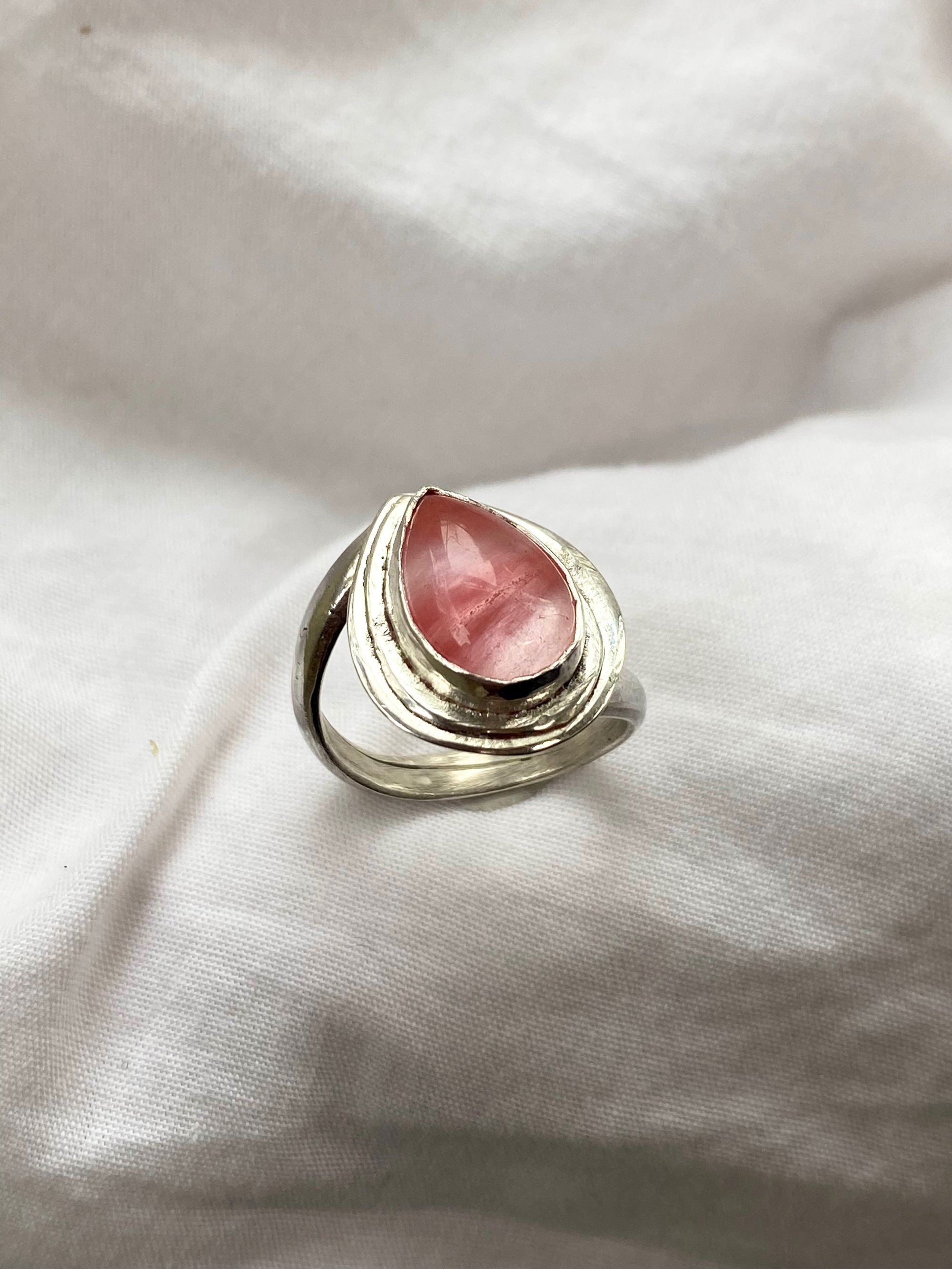 Teardrop shape bezel set cherry quartz 925 sterling silver free form band