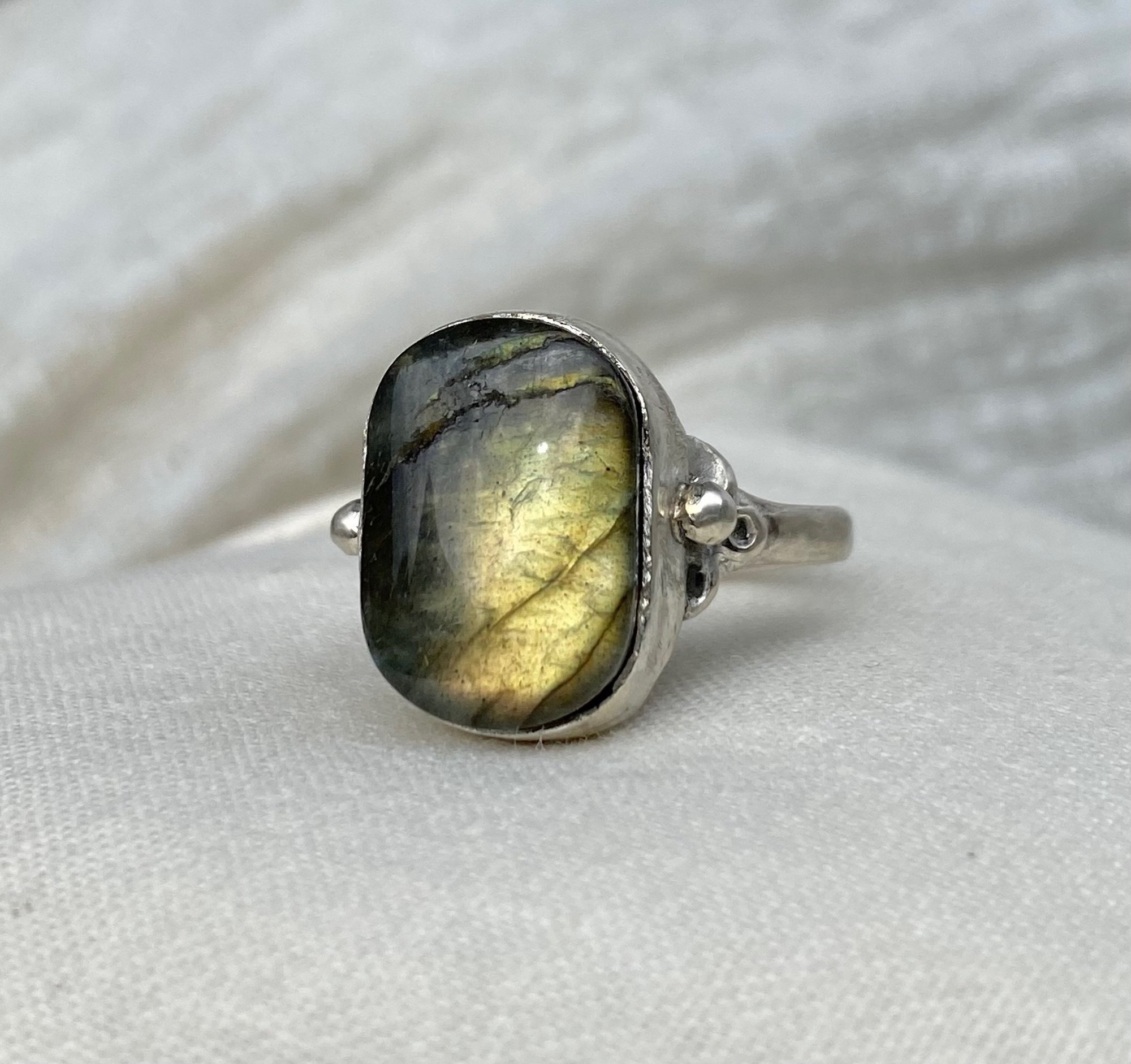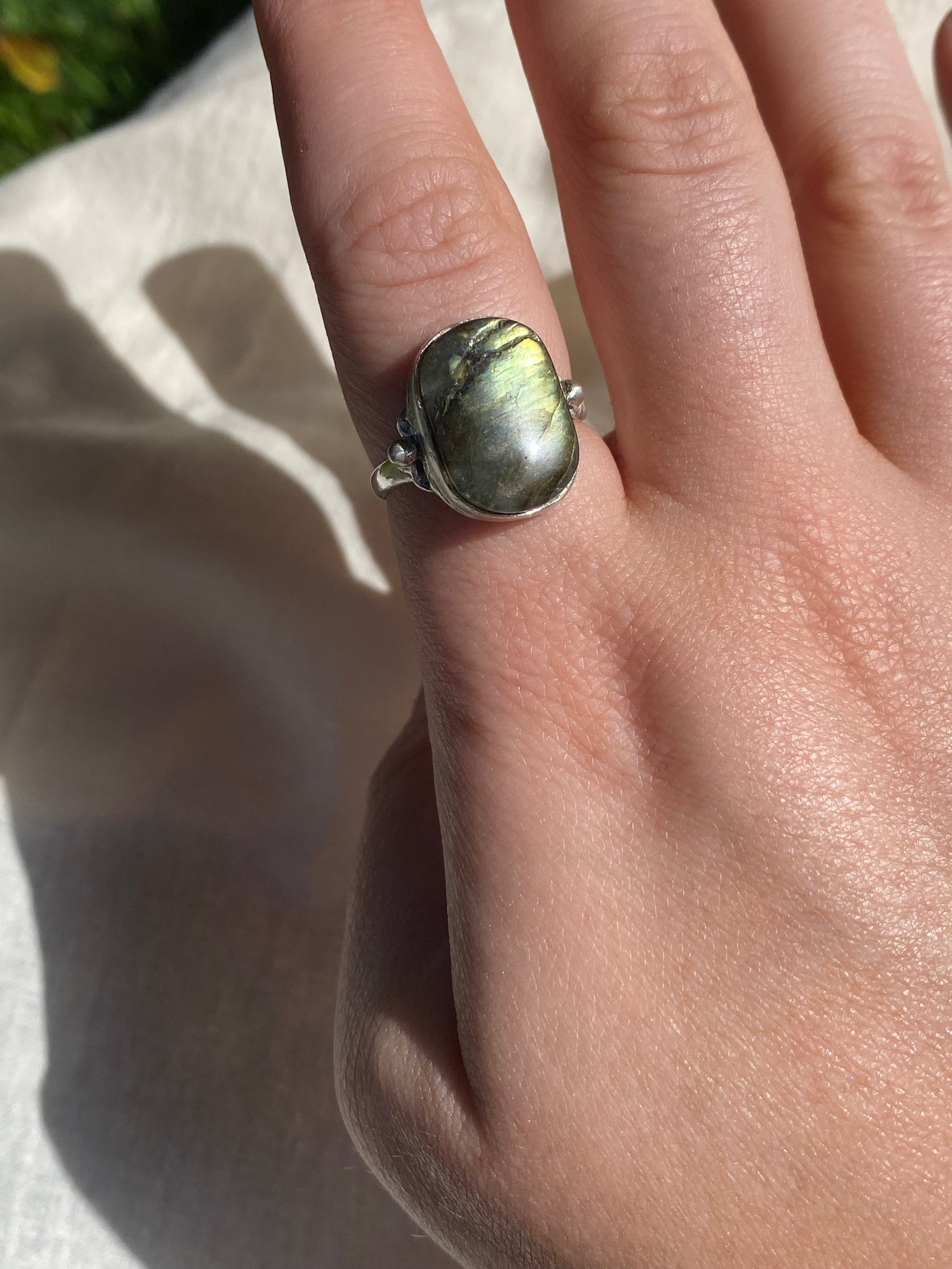 Handmade 925 sterling silver ring w/ bezel set Labradorite healing stone
