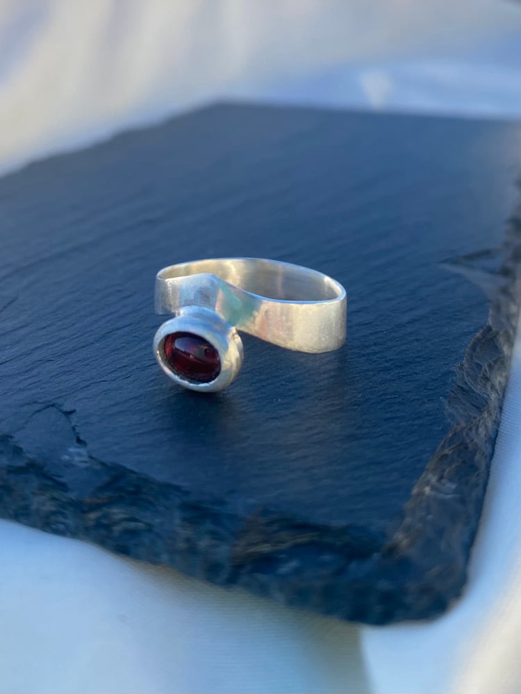 Handmade 925 flat band ring with oval garnet cabochon bezel set!