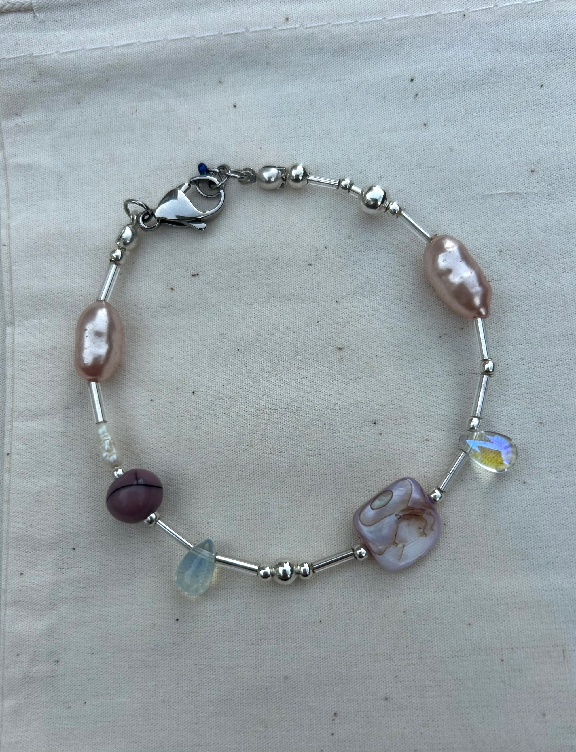 Beadie bracelet design 'Grace' random assortment of up-cycled vintage beads with stainless steel hardware.