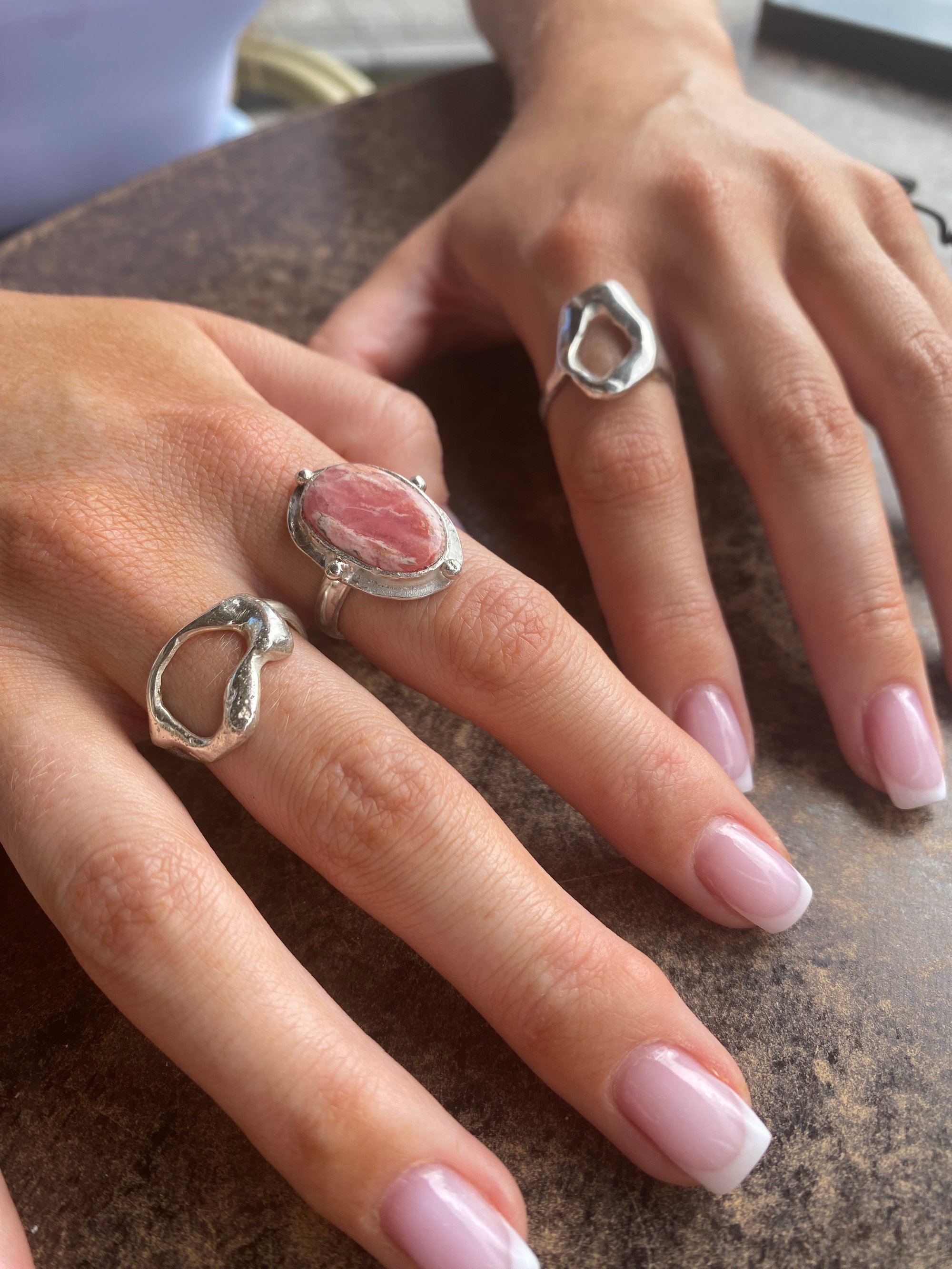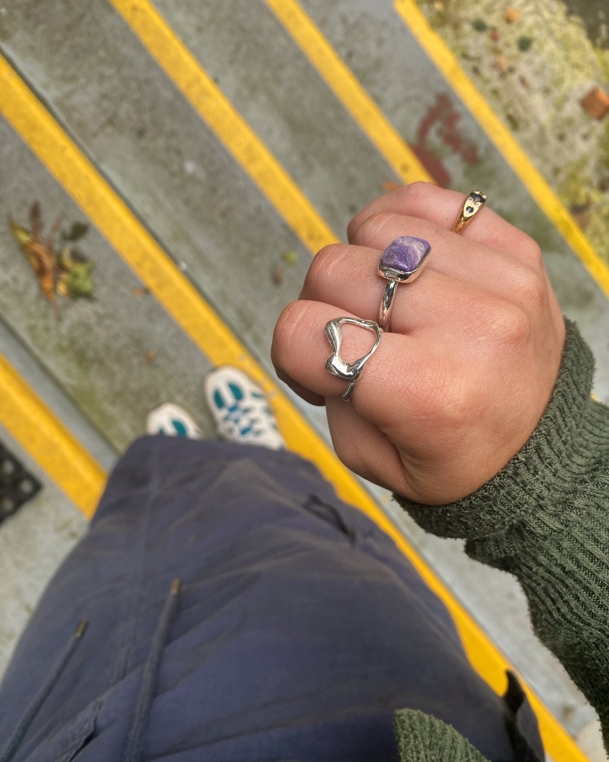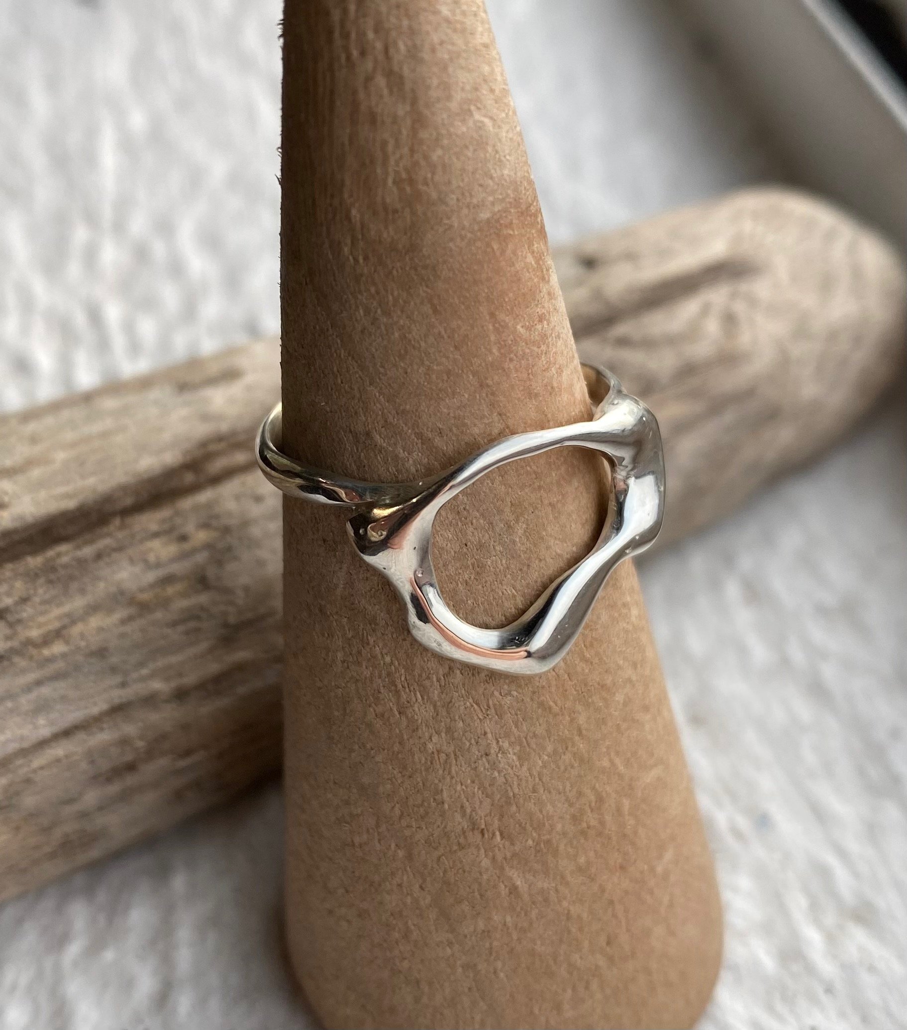 925 sterling silver liquid 'o' ring. Eroded appearance achieved by the decorative metalwork technique called reticulation which is when the surface of the metal is brought to an intense high heat to the point of melting which leaves the most unique, once-off organic almost fluid-like pattern.