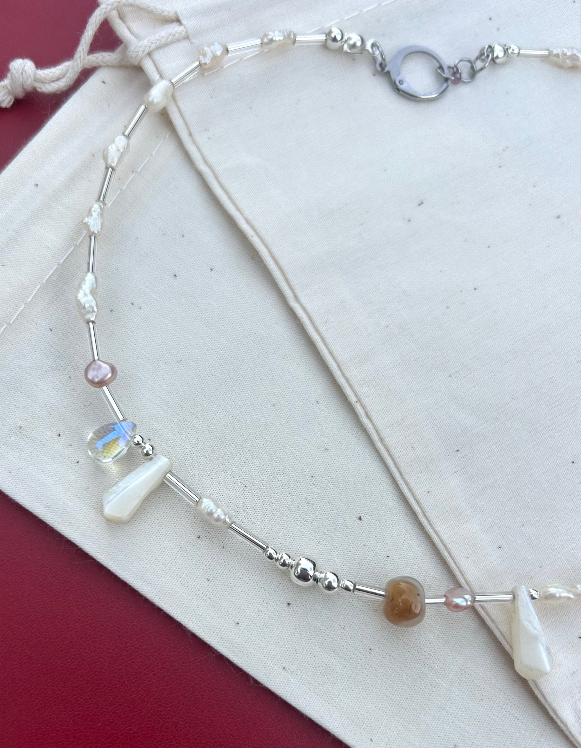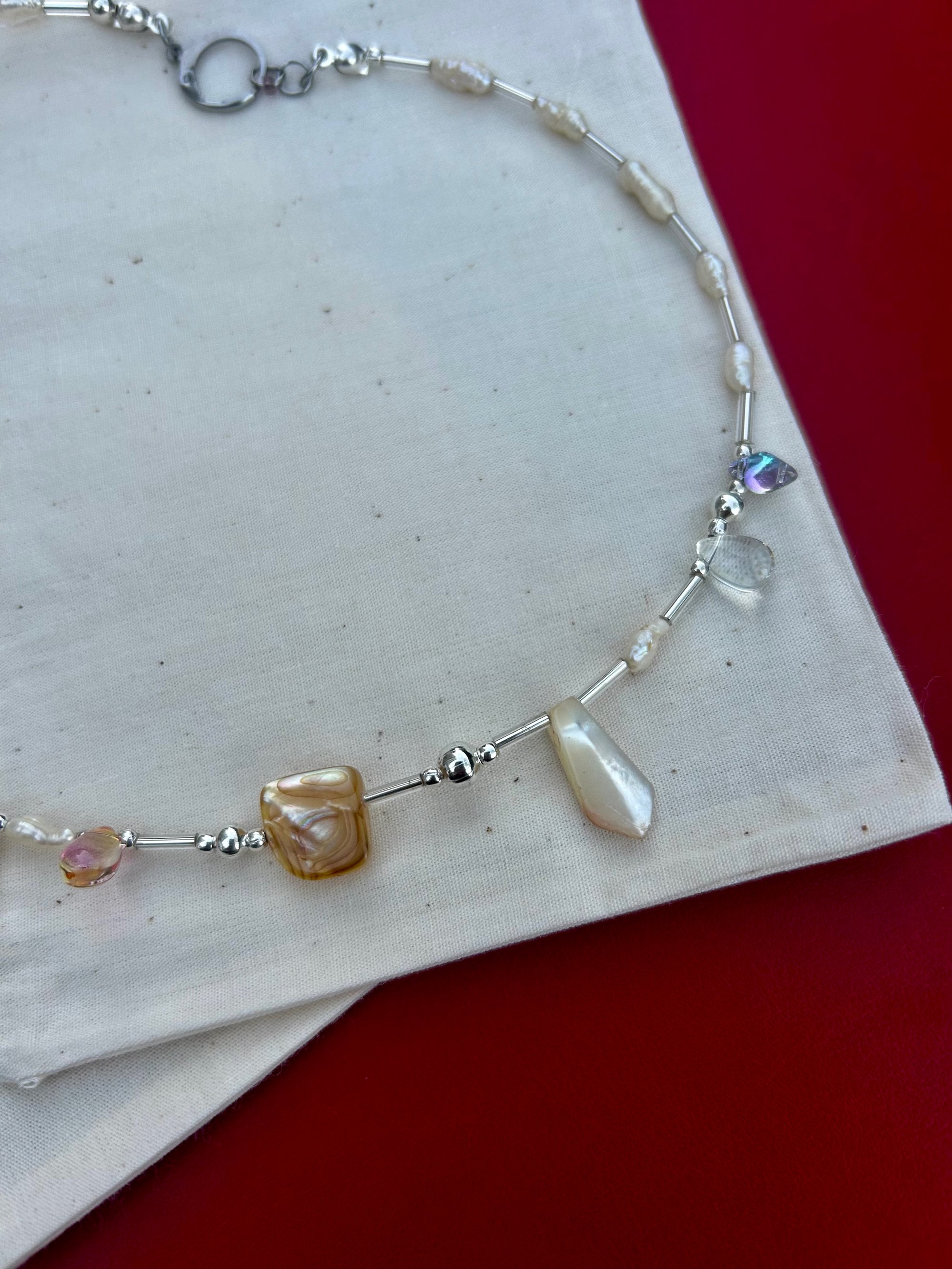 Beadie design 'Peggy' random assortment of up-cycled vintage beads with stainless steel hardware.