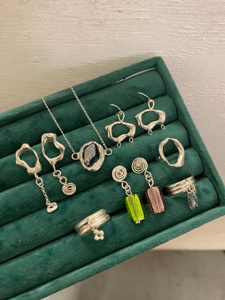 Handmade 925 sterling silver one of a kind earrings - made from liquid ‘o’ casted design and glass dangly beads w/ earring hooks.