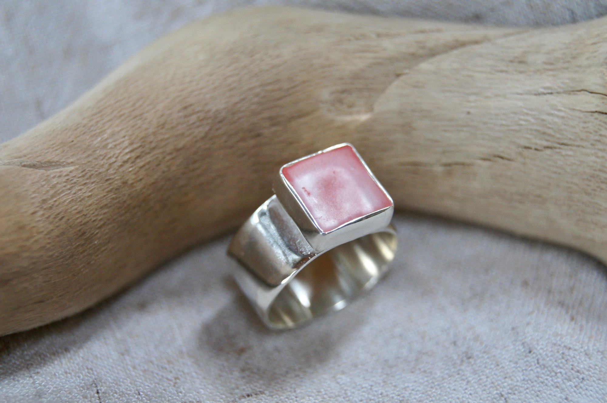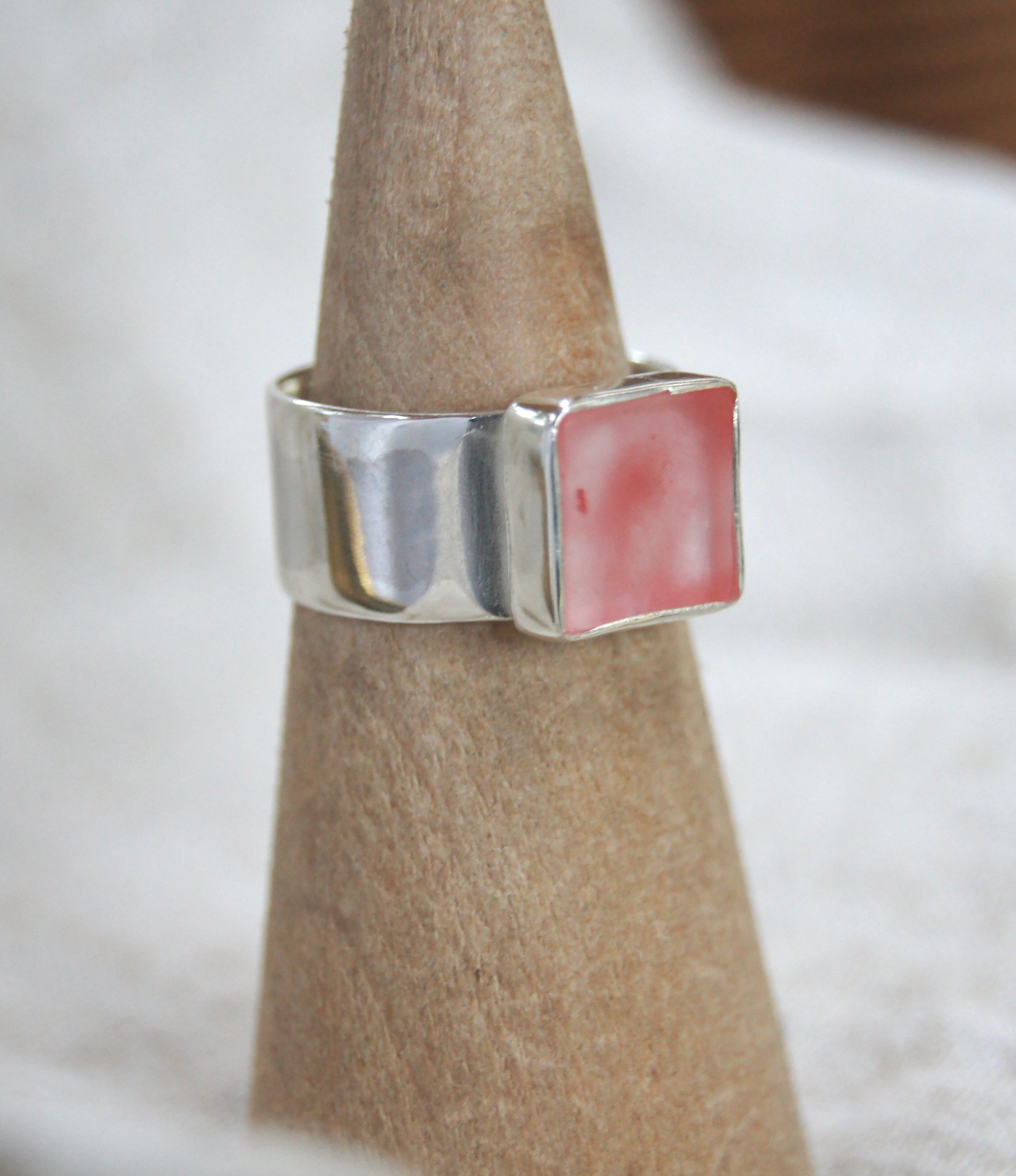Handmade 925 sterling silver flat shank and square cherry quartz bezel setting.