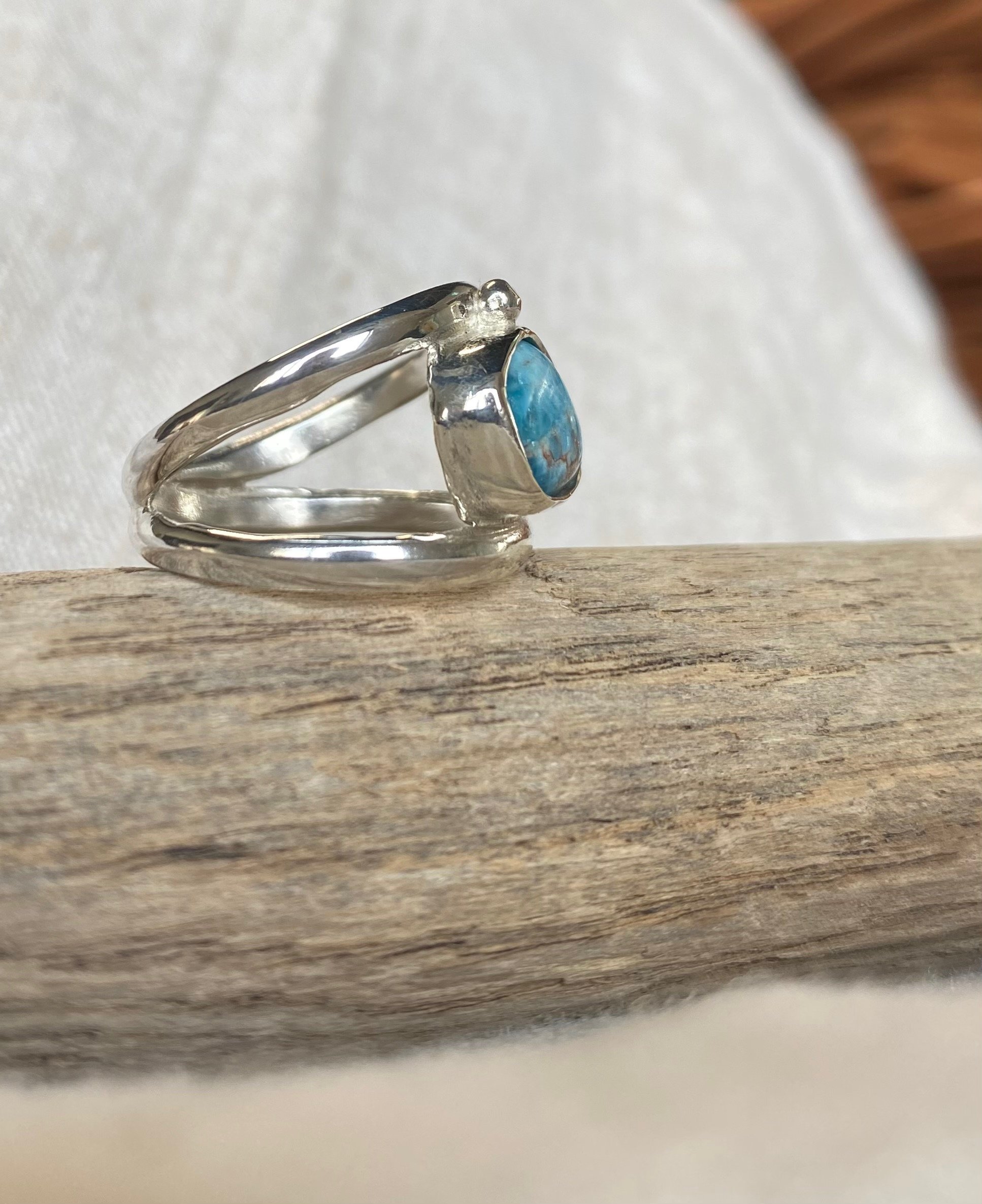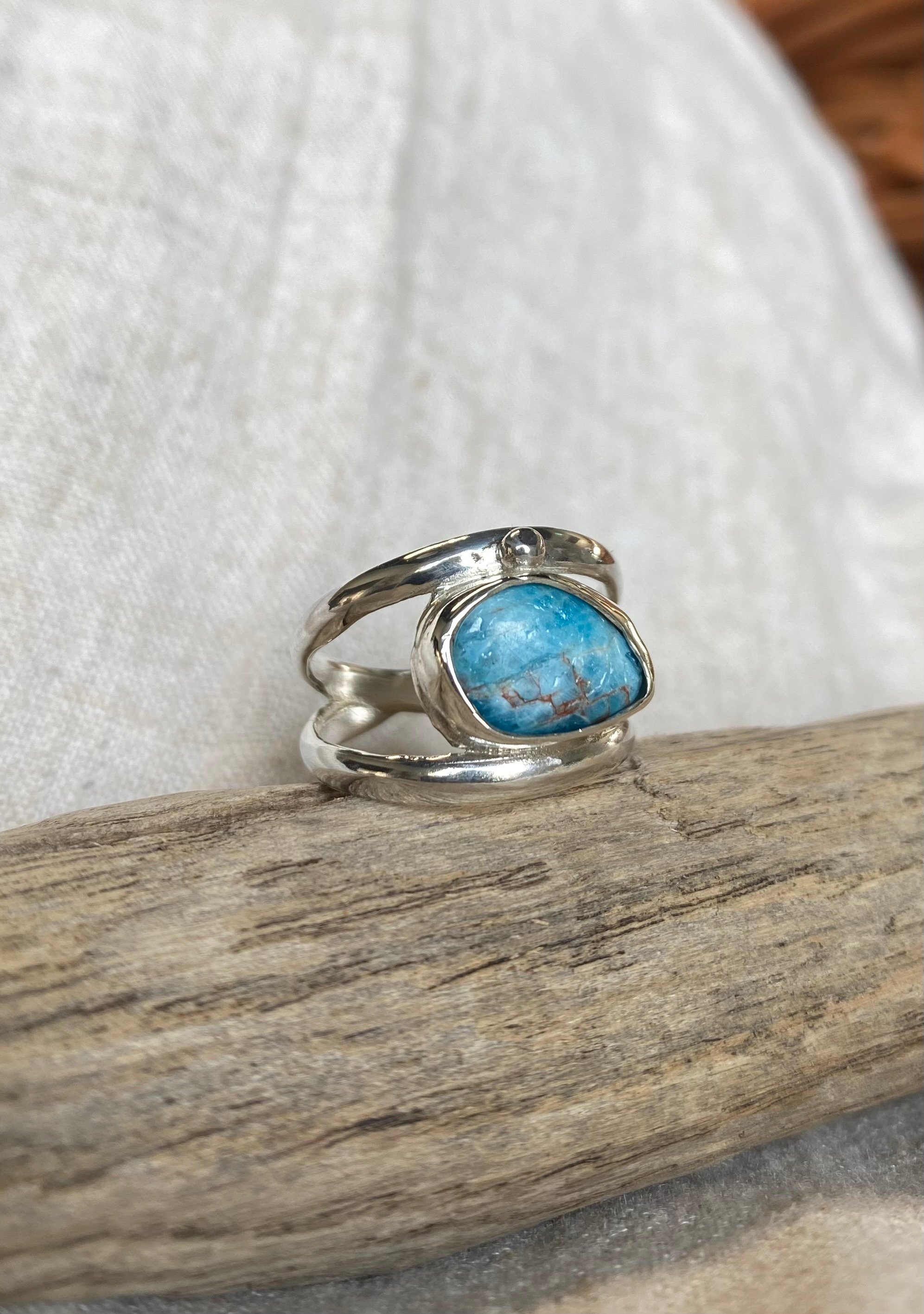 Handmade Blue Apatite 925 sterling silver double cross over tapered shank.