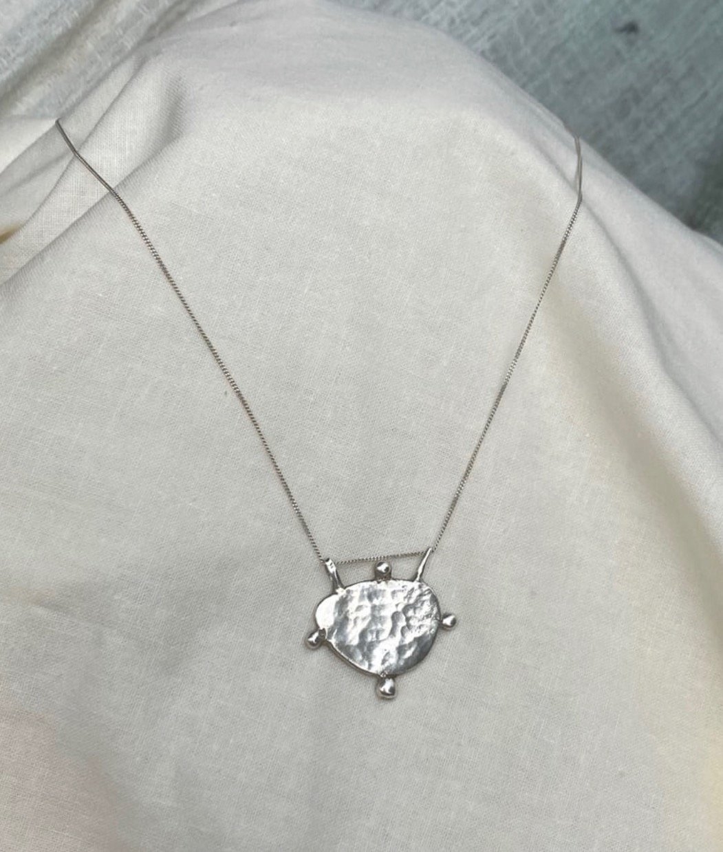 Hammered 925 sterling silver pendant resembling the rugged sea's surface w/18'' curb chain