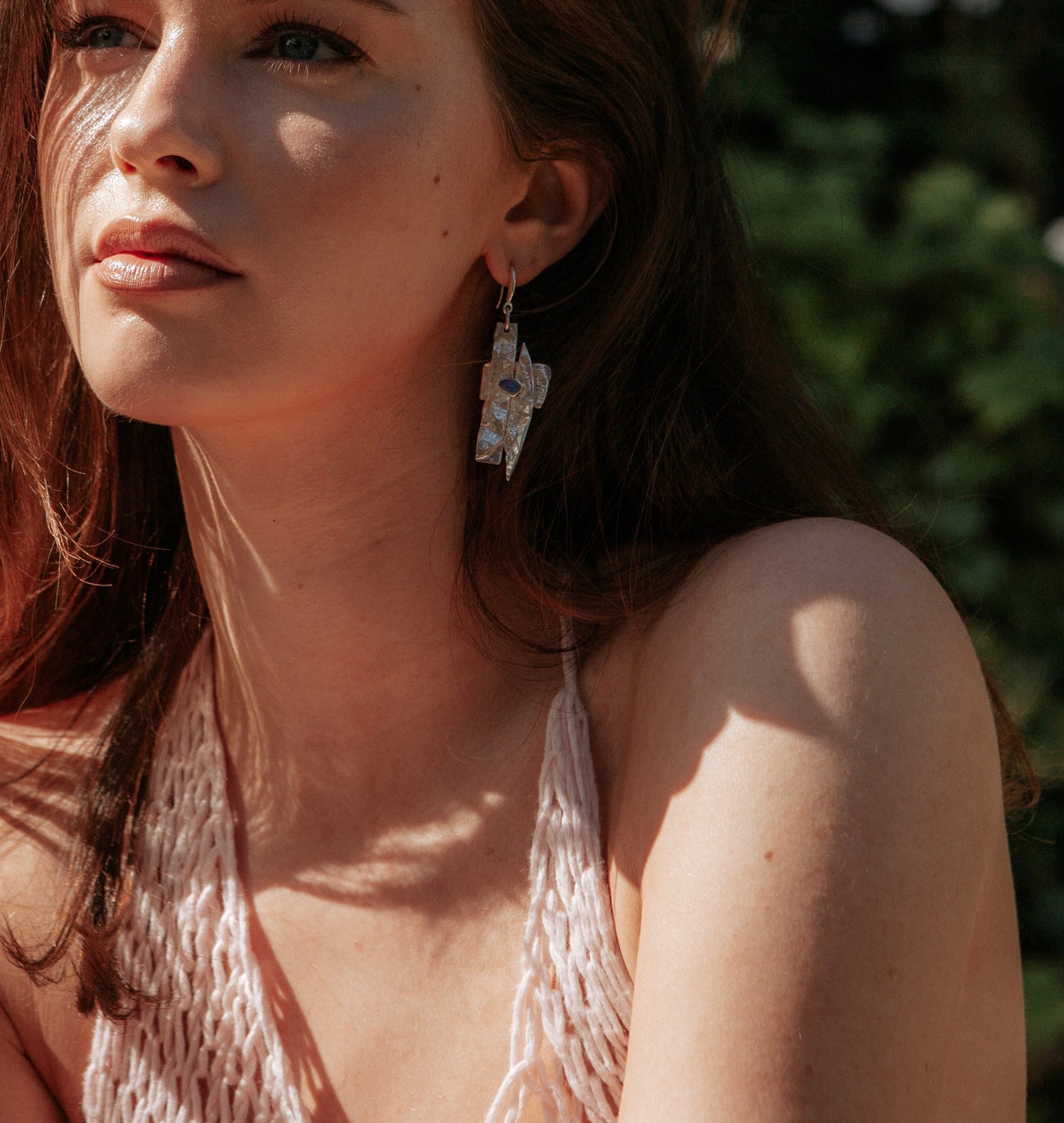 Reticulated sterling silver dangly earrings with thick and sturdy 925 hooks and hardware accompanied by an enamel filled bezel in colours blue, green or red.