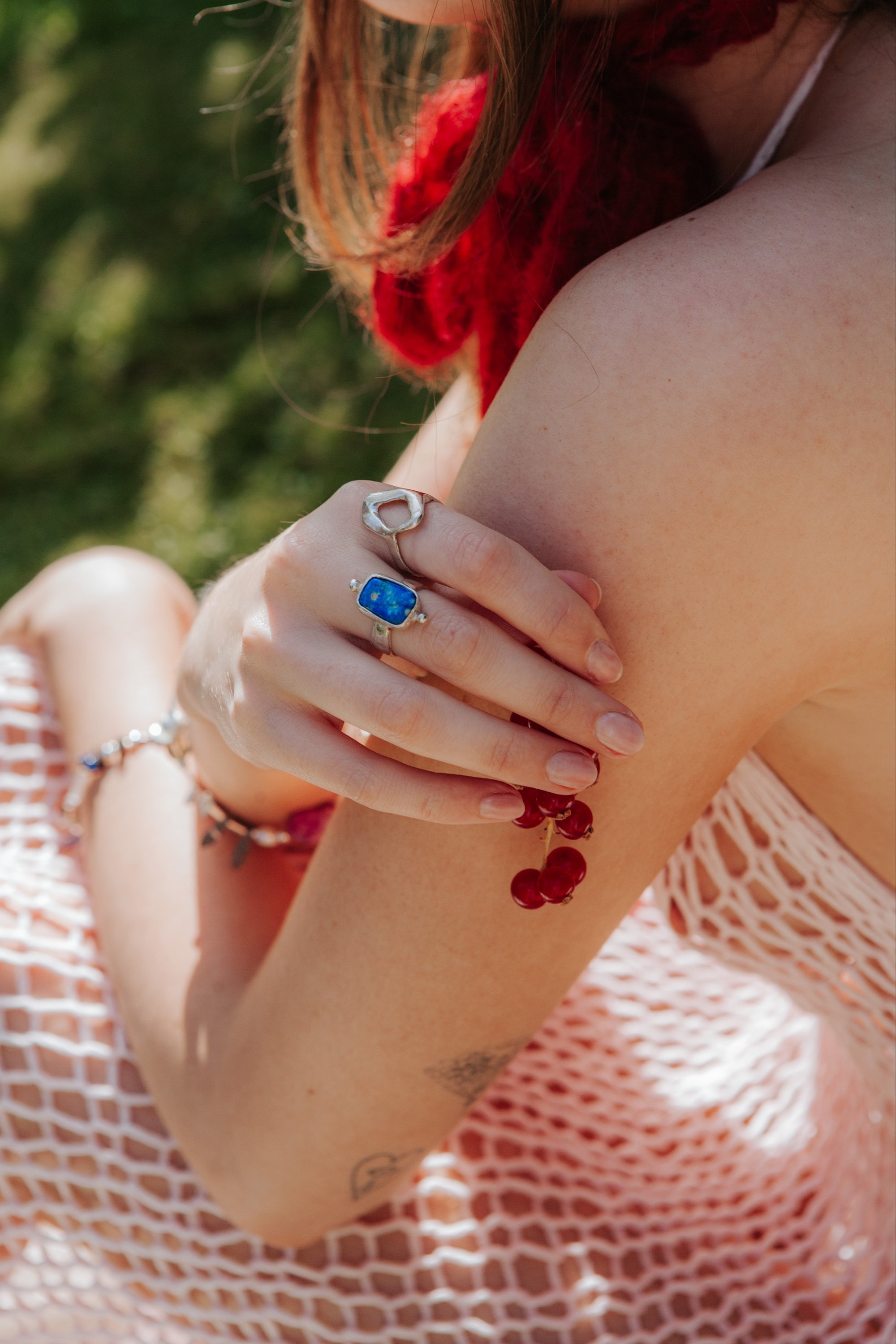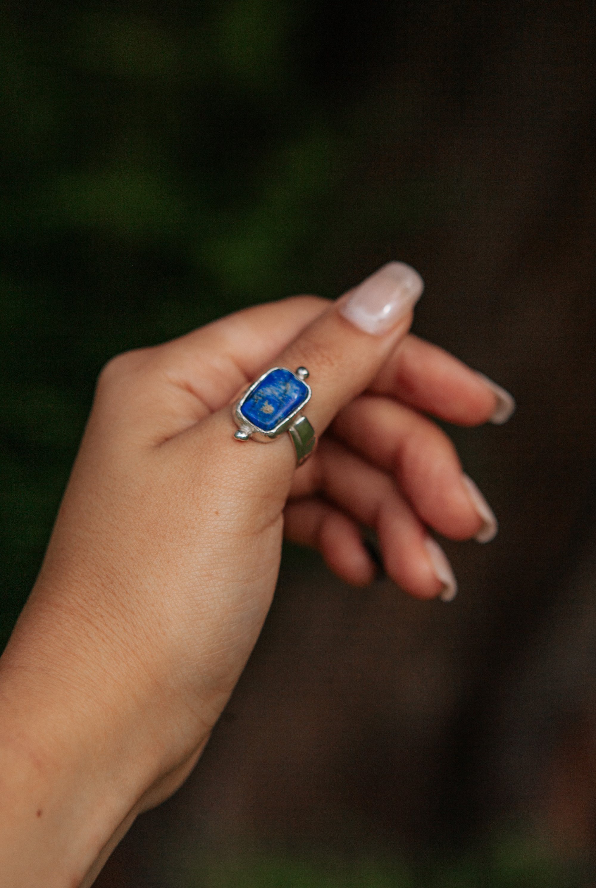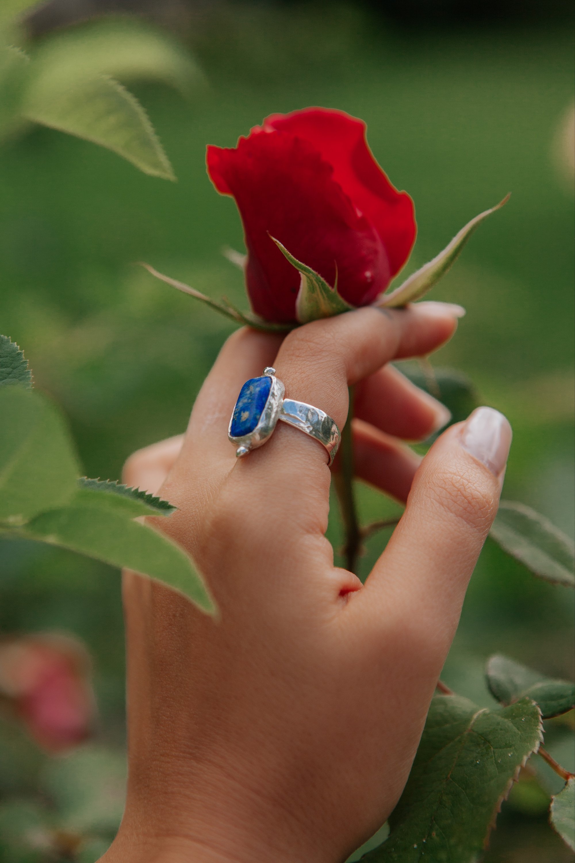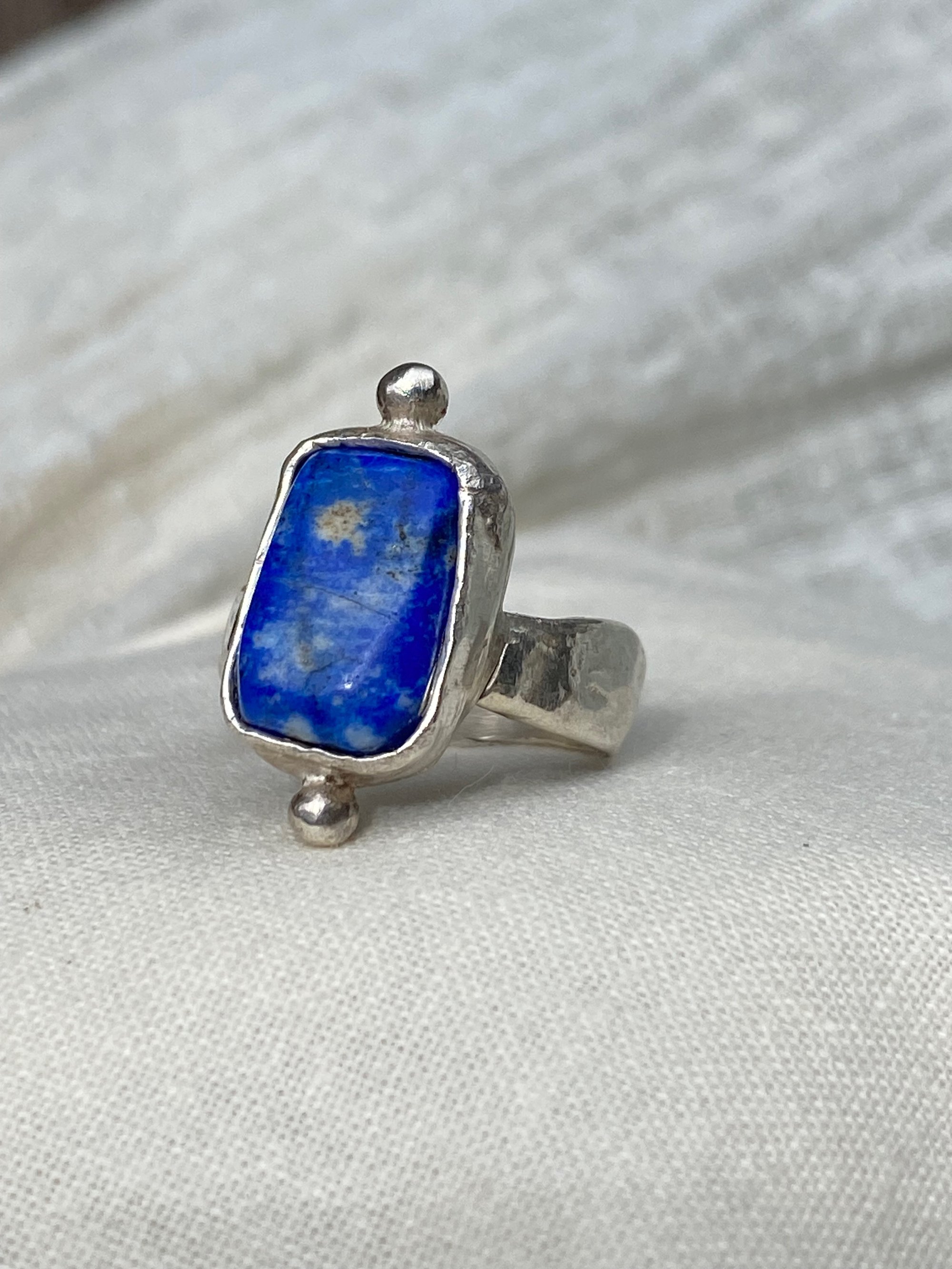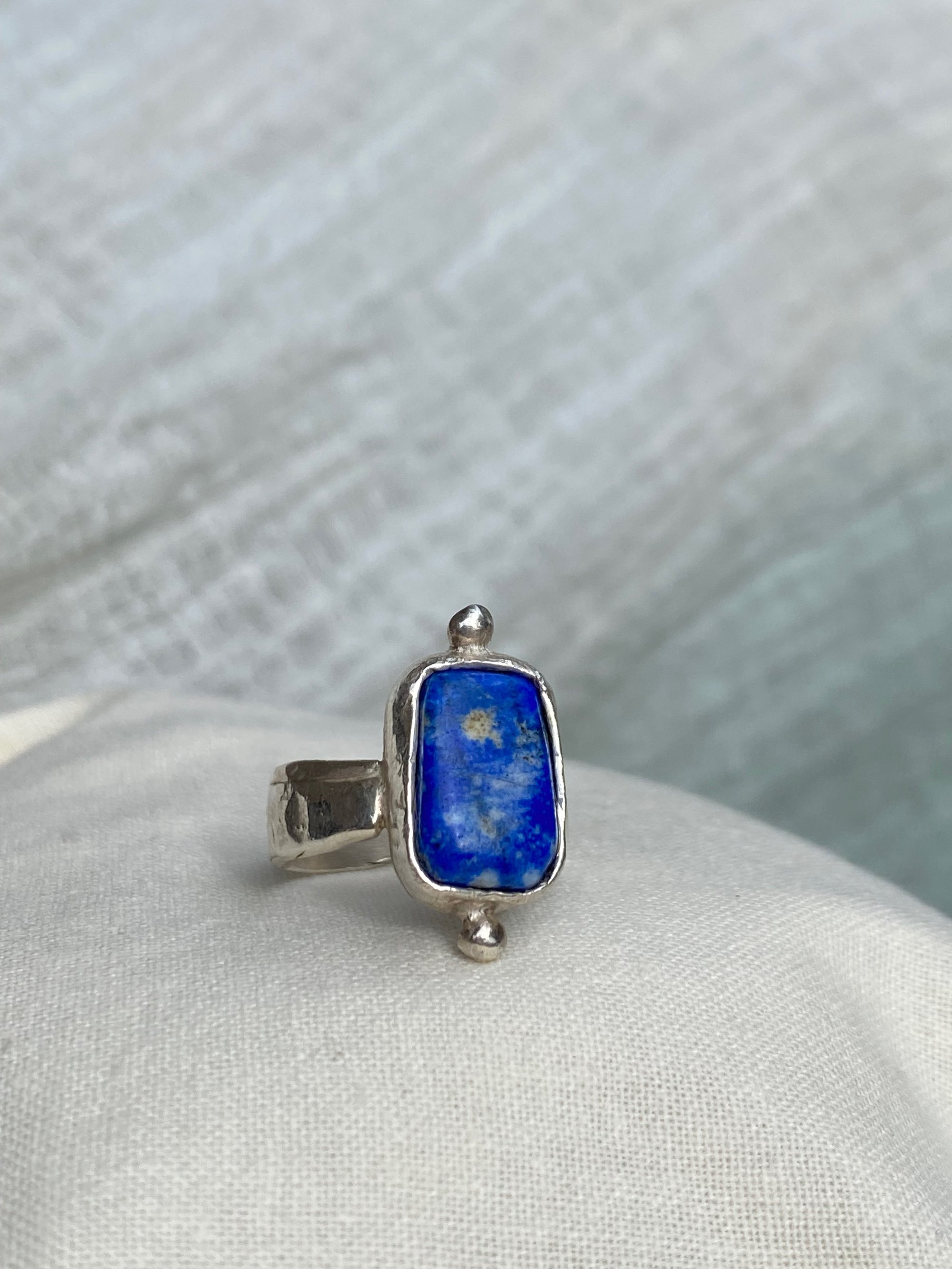 Hammered 925 ring with bezel set lapis lazuli gemstone. Handmade