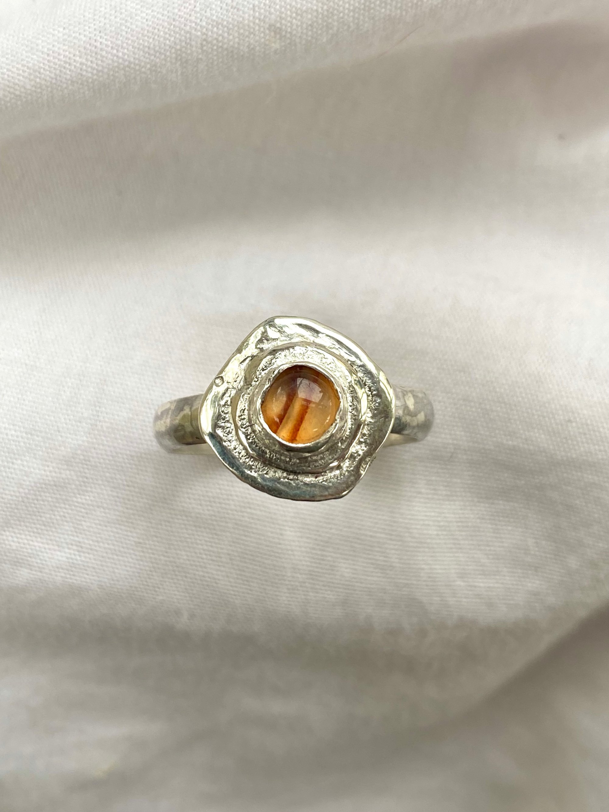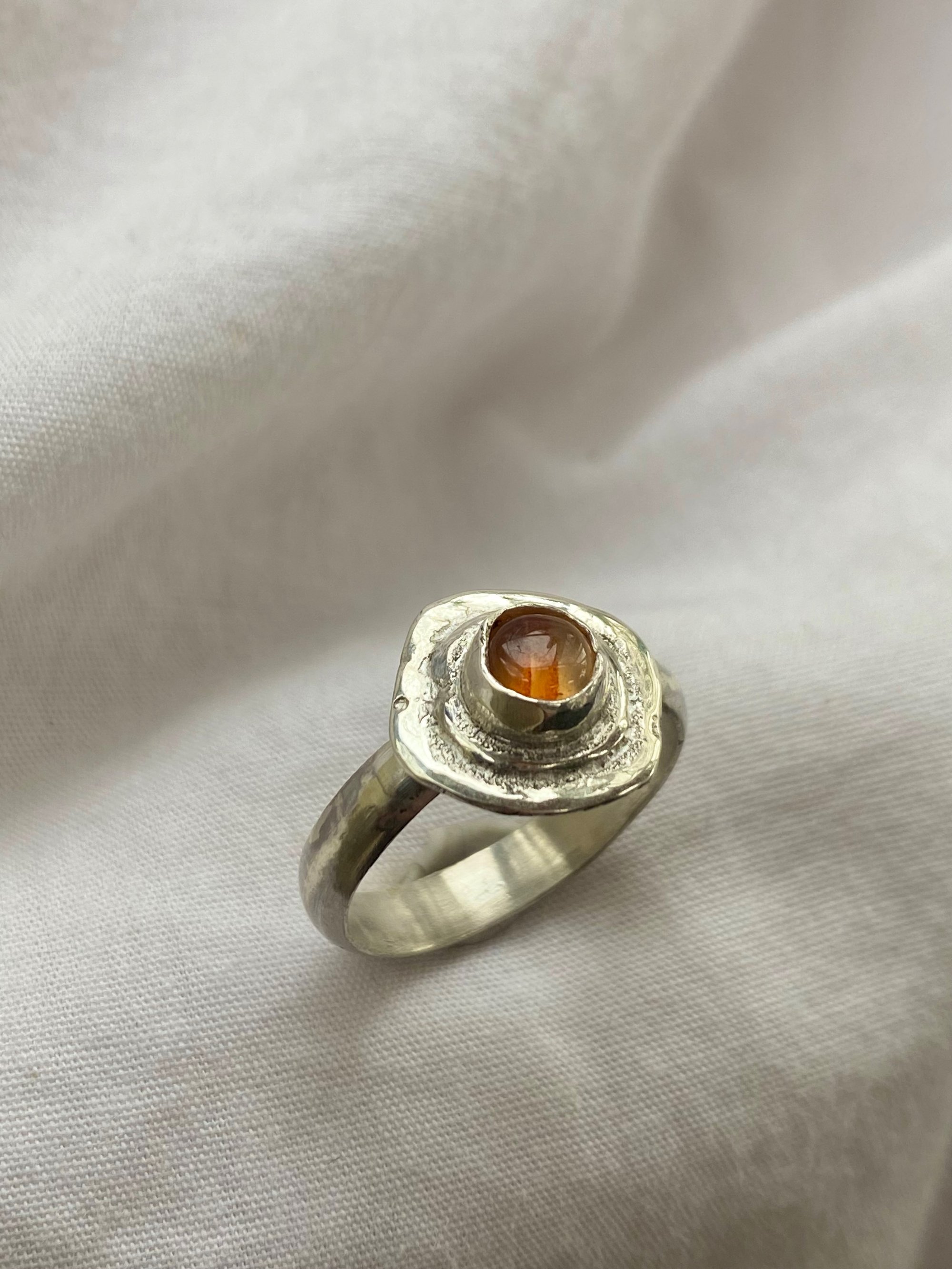 One of a kind 925 sterling silver orange agate asymmetrical bezel set ring